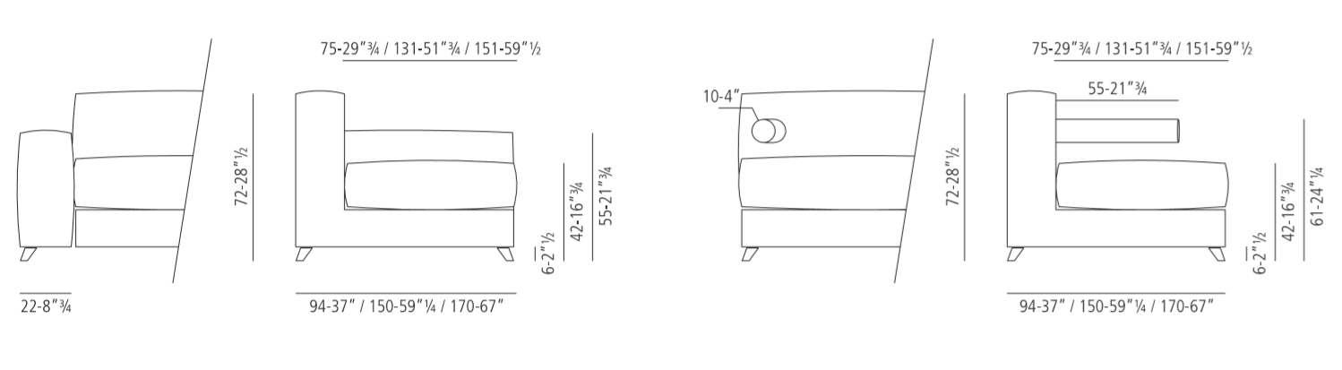 415 Tube is an extremely customizable sofa with both a traditional and innovative feel, both opulent and minimalist, and it can be combined into different variants by choosing single elements with different sizes along with corner and end elements, stand-alone sofass, chaise-longues, ottomans and panels that can be freely assembled. Armrests can take the shape of metal rolls covered with leather.