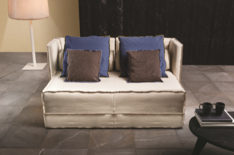 The sofa bed has a wood plastic composite and plywood structure and has been designed with the utmost attention to style, fineness, quality and care for details that are typical of Interior Design Made in Italy.