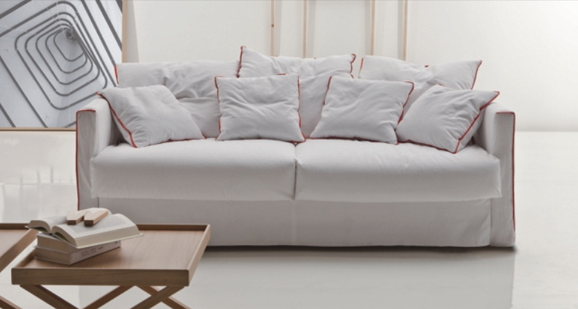 Vibieffe 3600 Tangram is a two-seat sofa bed available in different sizes and with completely removable covers in cotton, linen, leather or with custom covers.