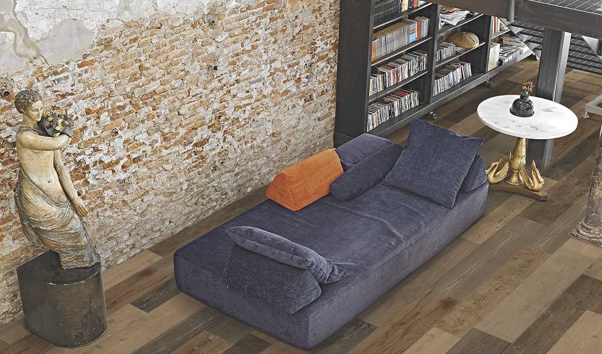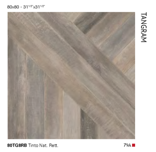 Tinto, Back and Essenze are the variants of the Emilgroup collection. Tinto is a distinctive type of stained wood in various shades of grey. Back is a sophisticated evocation of the underside of salvaged wood. The effect is that of a highly varied surface, with the tile sizes often indistinguishable within the laying pattern. Essenze mixes the woods from old planks of different origins and variegated colours. For original design schemes with a strong aesthetic personality, without sacrificing the technical qualities of porcelain stoneware. The series is completed by the 80x80 Tangram tile which interlocks, builds up and breaks down geometric forms, the basis for infinite installation layouts. Attractive, unconventional effects run across the surface, enriching the most innovative design schemes.
