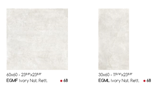 The collection consists of 6 plain tile sizes and 2 floral decors.