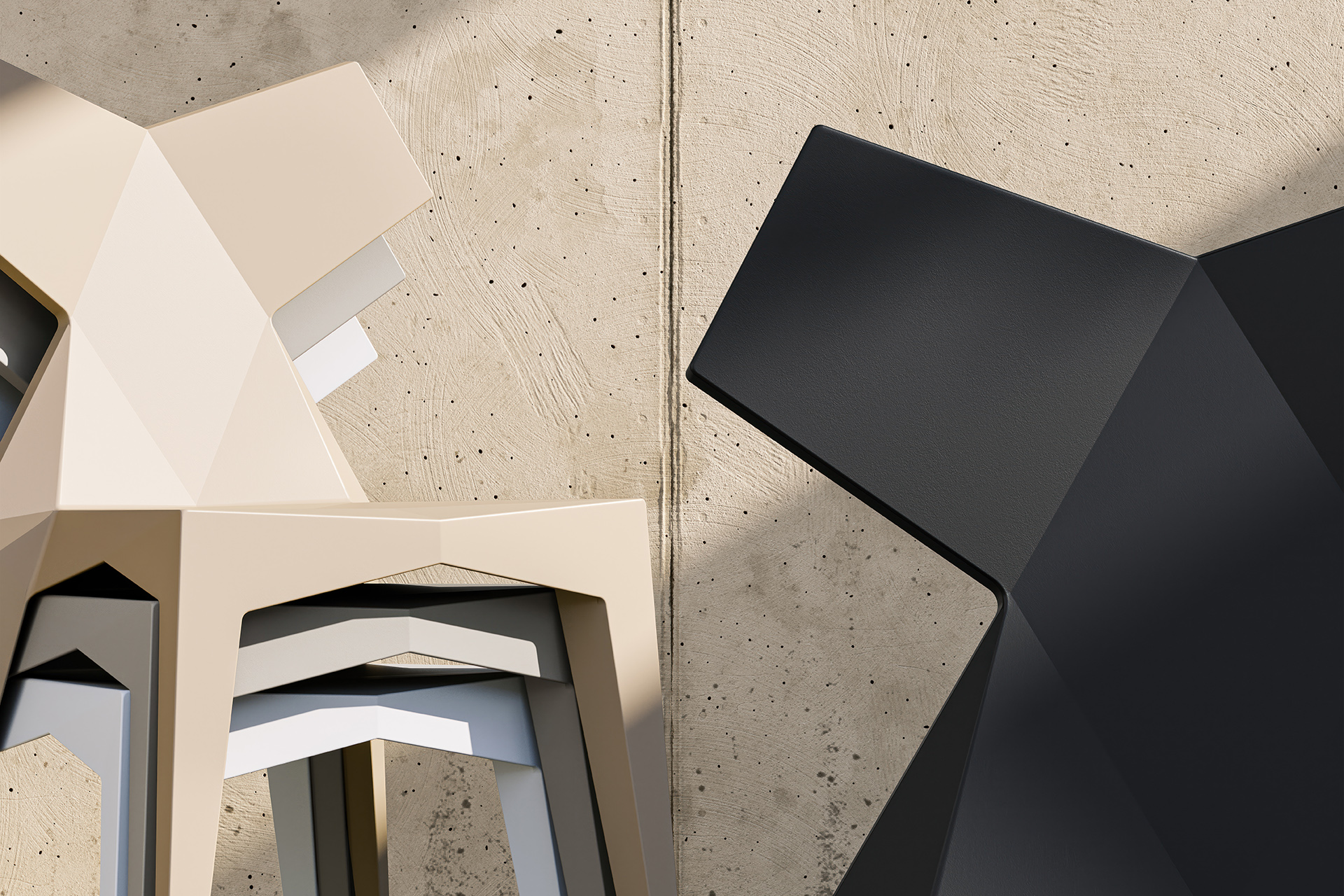 Made from polypropylene and reinforced with fiberglass manufactured by gas injection. Stackable. Available in various colors. Suitable for indoor and outdoor use.