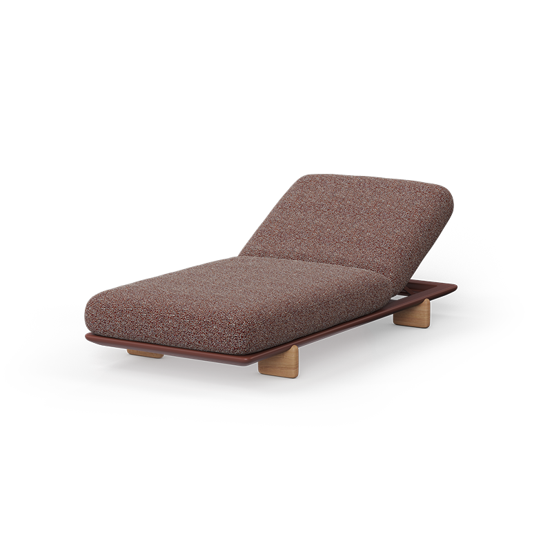 The sun lounger from the Milos collection harmoniously combines functionality and beauty. Precision manufactured, this sun lounger features a lacquered aluminium structure that ensures exceptional resistance to outdoor conditions. Its iroko wood legs add a touch of elegance and warmth, while providing stability and a connection to nature.