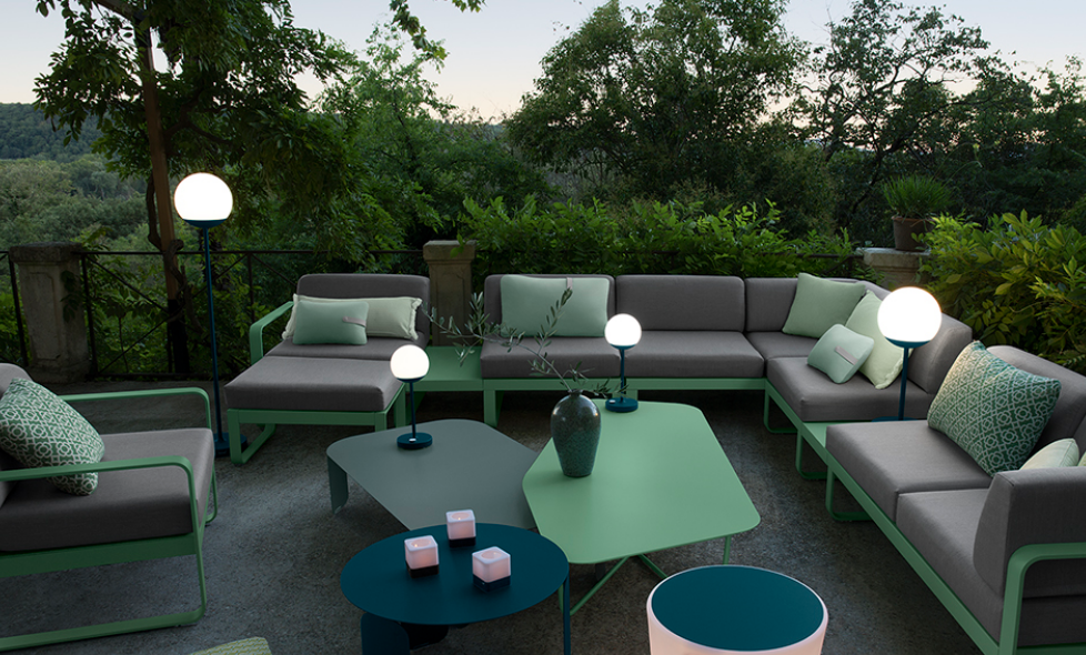 La collection de luminaires MOOON ! permet à Fermob de continuer à s'imposer comme leader sur le marché des lampes sans fil. La lampe H.41 Mooon! allie un design soigné aux lignes fluides à de riches fonctionnalité