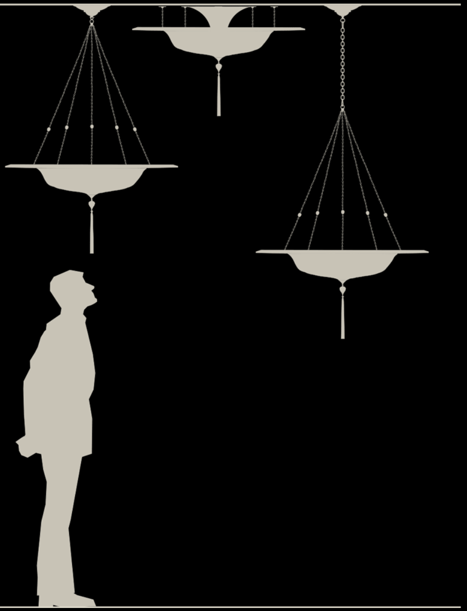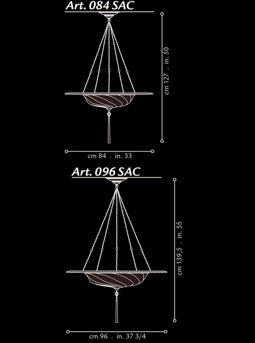 This lamp is ideal for large, sophisticated interiors. The light filters through the silk and penetrates the inlay of the decorative ring to create an evocative atmosphere.