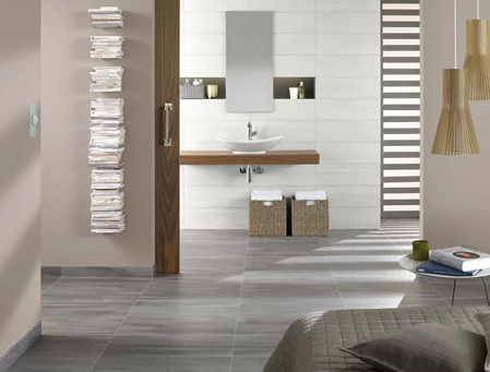 The TOWNHOUSE wall and floor concept, which combines nature with sustainability, makes it possible to create rooms in a balance that makes a sense of well-being a first-hand experience. The high-quality slate design was transferred to a colour scheme that features muted hues of White, Beige, Grey and Anthracite.