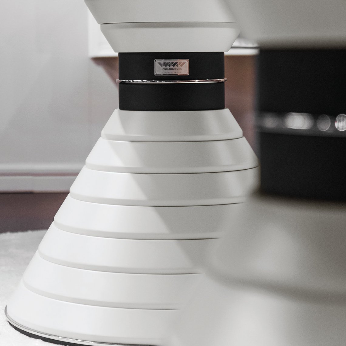 Roulette Table is unique and inimitable, made with a mahogany professional roulette wheel with lacquered external edges and a chips rack for the dealer. The double wooden ring base with stainless steel profiles, it's a real visionary artwork, which gives a touch of luxury. The soft touch black lacquered table edges have lacquered black curved chips racks and cup holders.