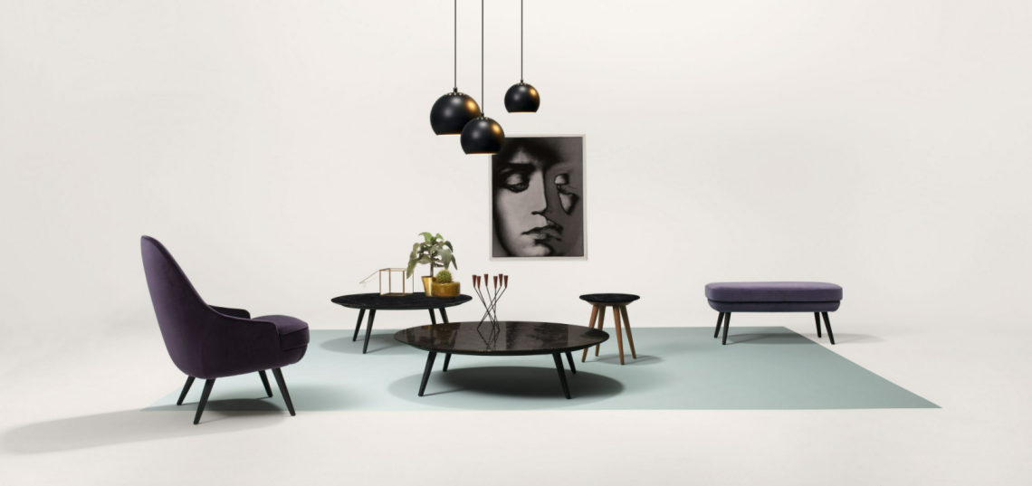 The circular occasional tables of the iconic 375 range are available in a small or large circumference, with a high-quality marble table top. The feet are solid wood.
