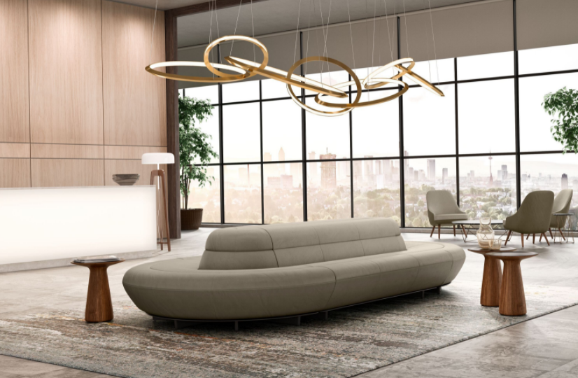 A small tree in the room – this occasional table appears to be rooted to the floor. Its richly grained solid walnut or oak stem tapers to support the streamlined table top with assured elegance. Available in black, bronze, or with an elegant leather covering.