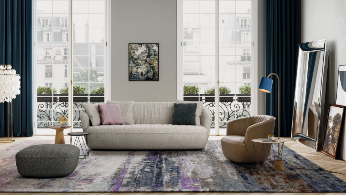 The récamiere from the Ishino family: a place you will love to relax in. A generous seat, inspired by the classic chaise longue. The récamiere opens to one side, giving a clear view of the room.