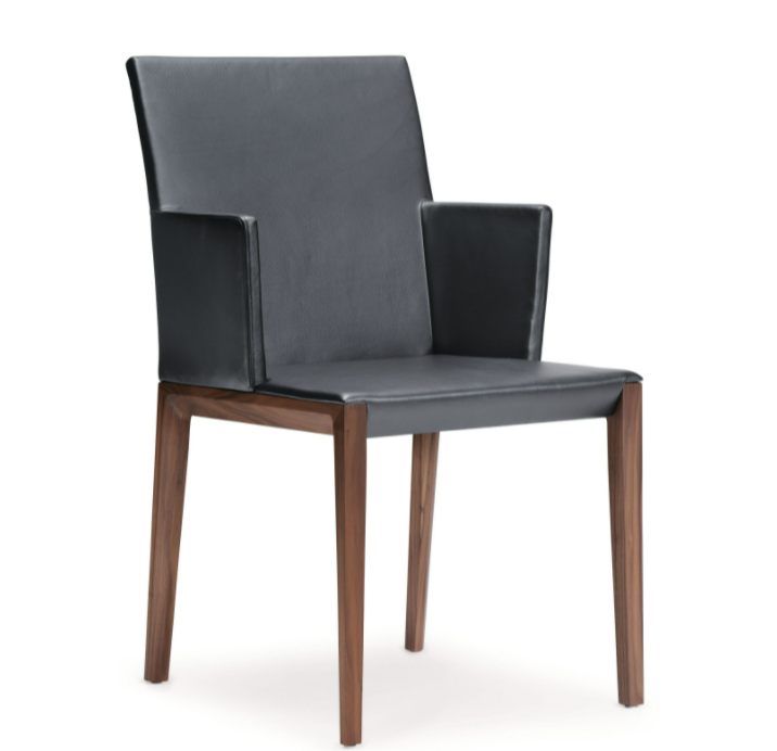 The soft leather of this chair appeals to those who sit in it, while solid wood ensures stability. The elastically springy back and the pocket spring cores in the seat offer the seating comfort of an armchair. Designed for extended periods seated at dining or conference tables.