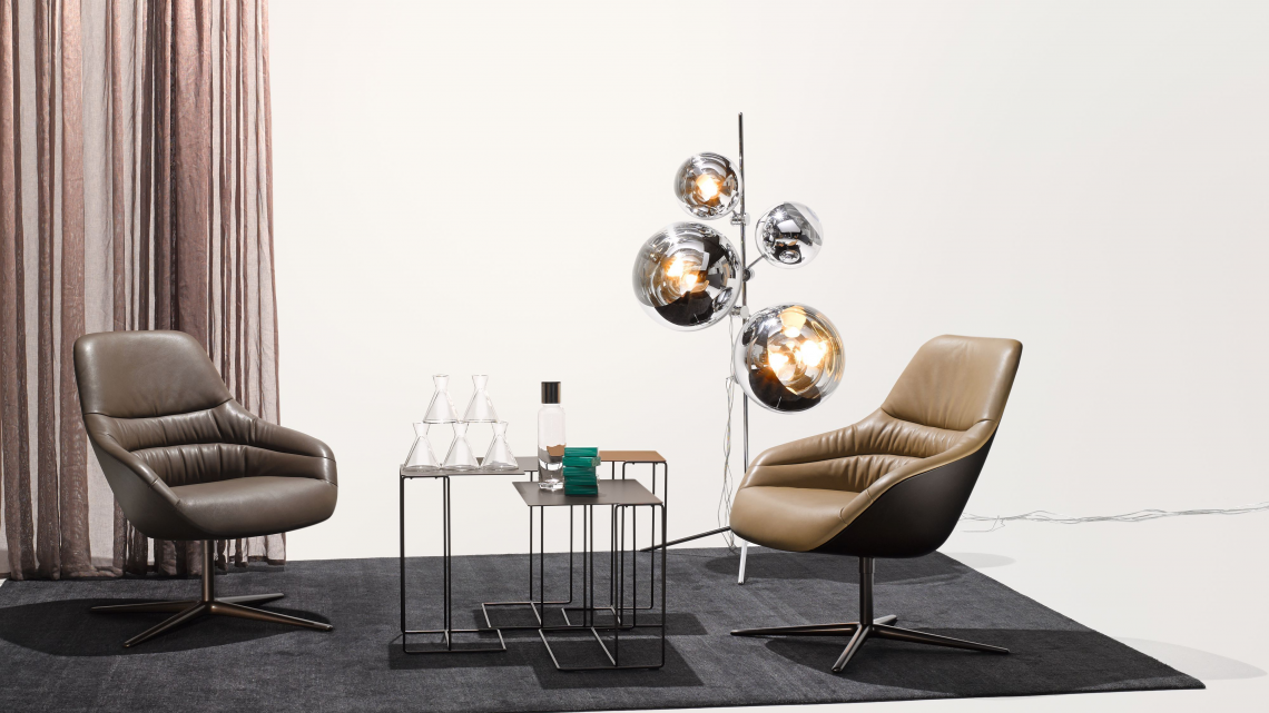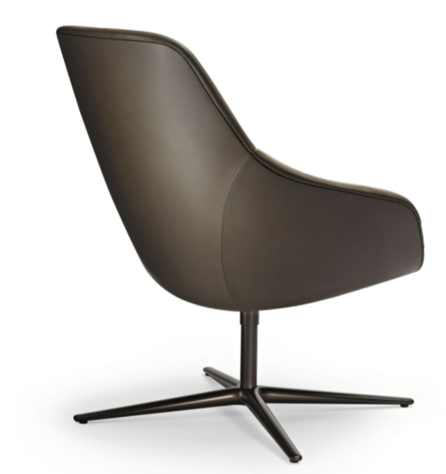 A sumptuous shell chair: the upholstered leather with fine seam patterns and a smoothly rounded star base attest to master craftsmanship.