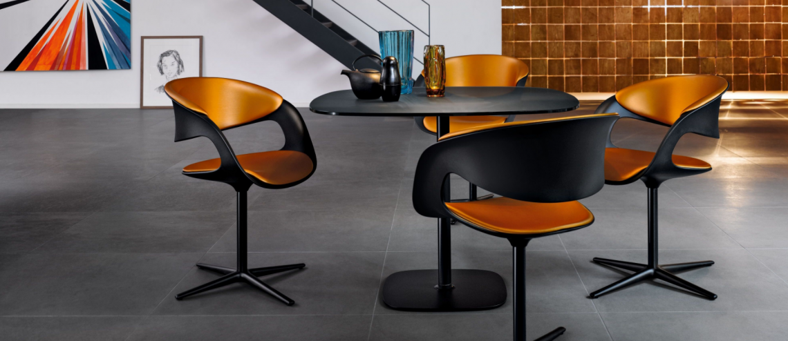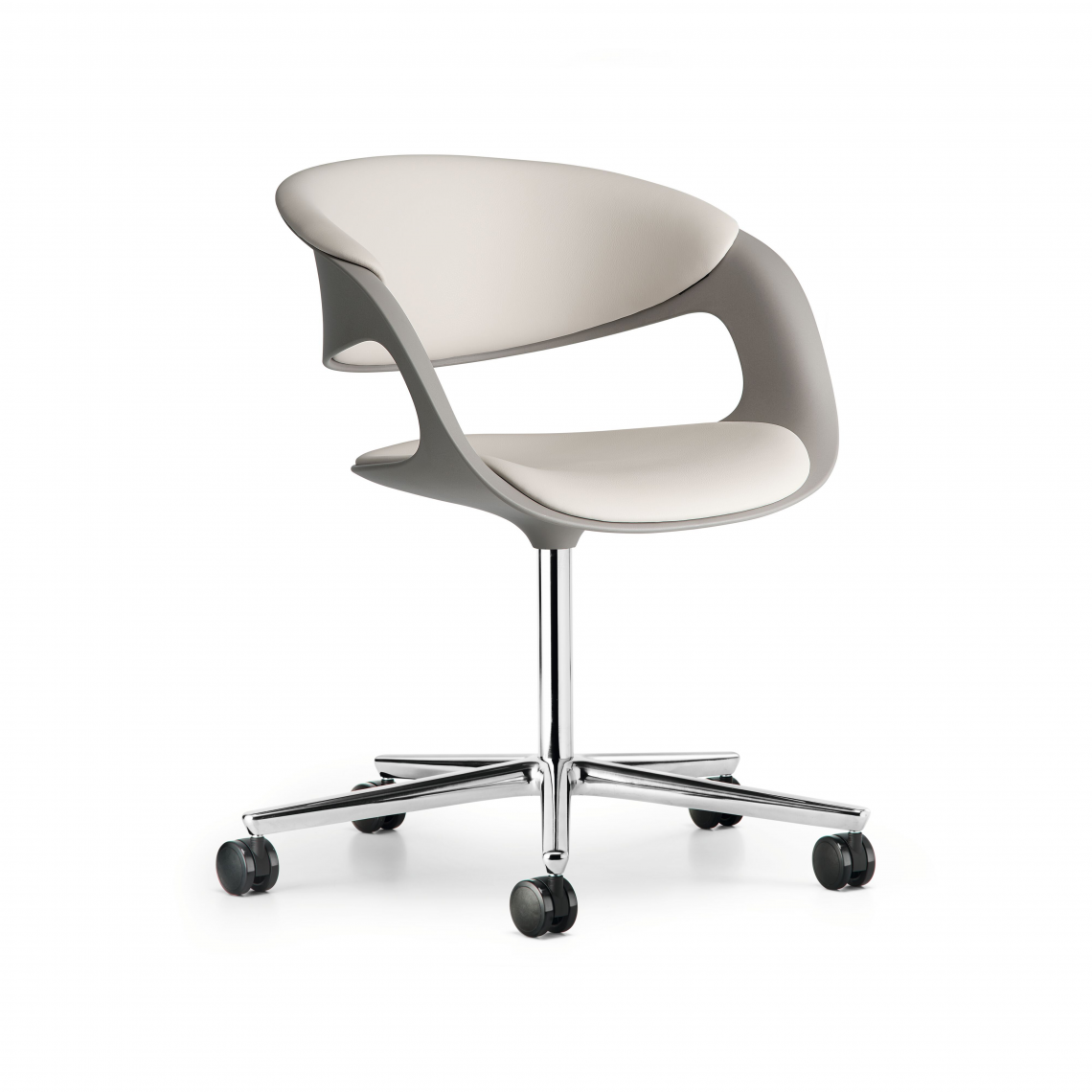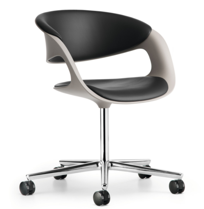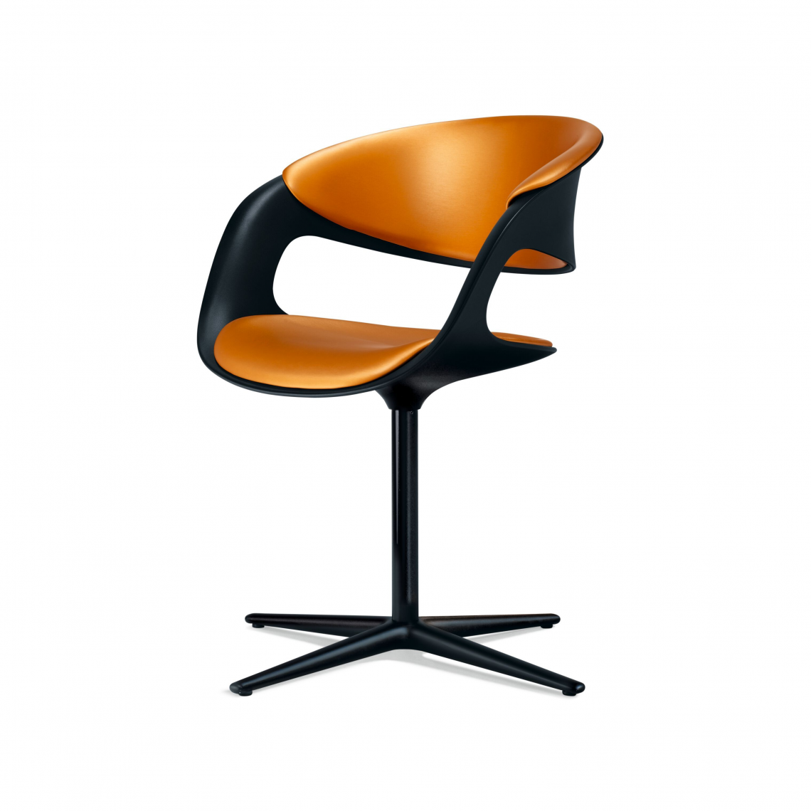 Sculptured form, minimal materials: on the outside, the sweeping shell supports your back; on the inside, the seat and back padding ensure comfort. An elegant all-rounder – for lounging and dining, conferencing and contract settings.