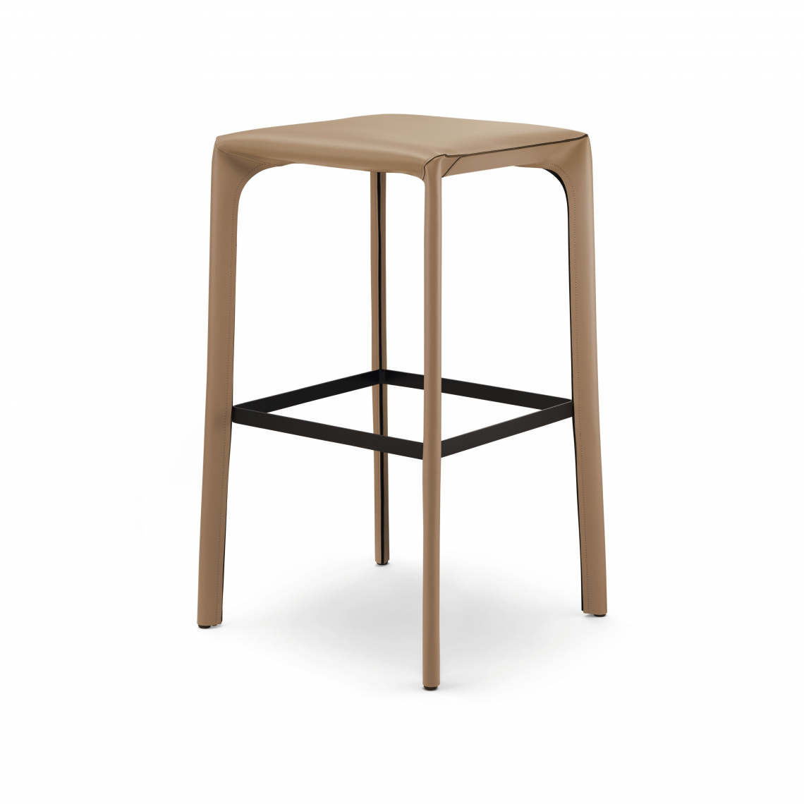 The high version of our Saddle Chair. The concept of the barstool is based on the elegance of resolute shapes: precise craftsmanship, classically austere in form, and at the same time extraordinarily comfortable. The firm upholstery contributes to a feeling of pure finesse. For relaxed sitting at table, bar or counter – with or without backrest as stool.