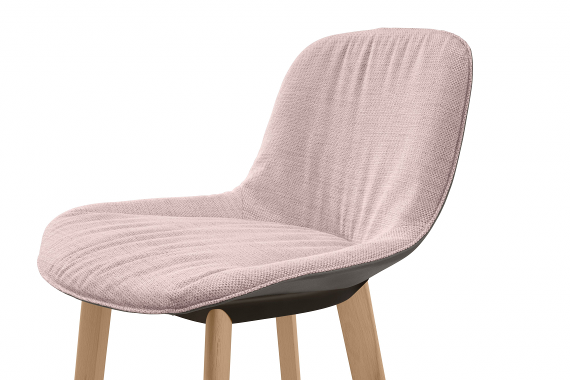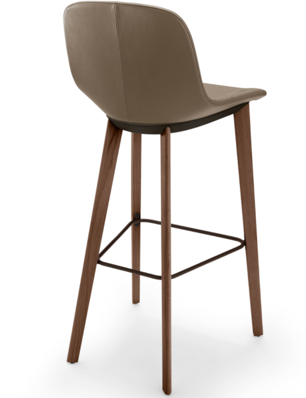 The design language of our popular Sheru program is continued in this elegant barstool, which offers a soft and comfortable seat at a bar, at a high dining table, or for a short meeting in a modern office. It can be upholstered in casual or formal style, and the cover can be removed by skilled personnel.