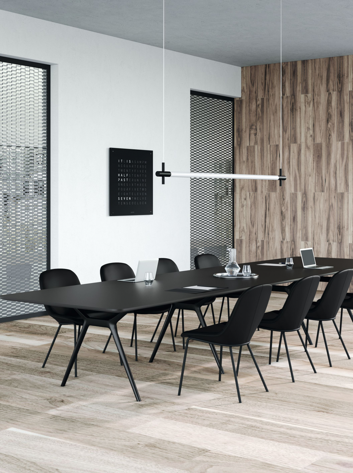 An elegant, comfortable chair that effortlessly brings together work, life, and feeling good. Thanks to new chAIR technology, this breathable shell chair offers a light and airy sitting experience. For hours of conversation – with family, as a guest among friends, in meetings, or at a conference.