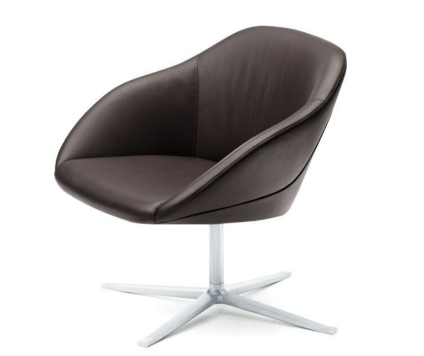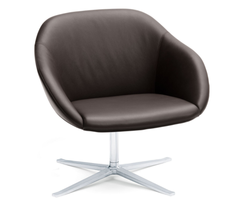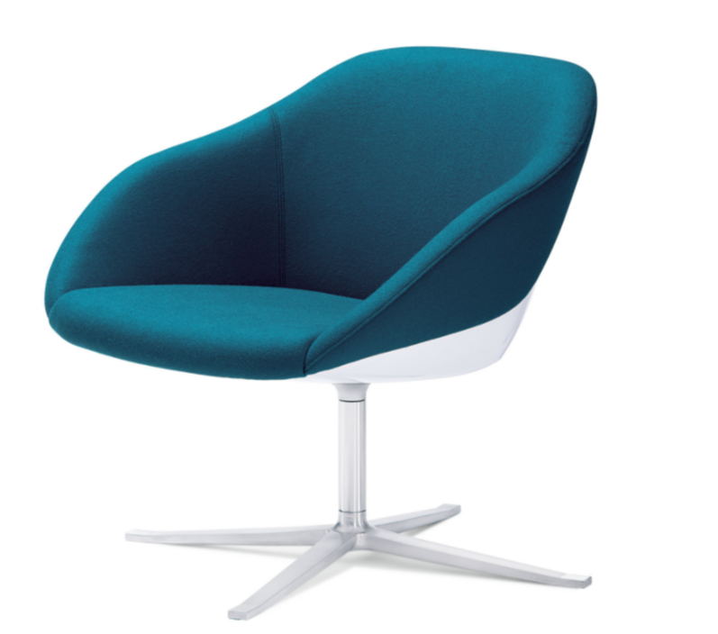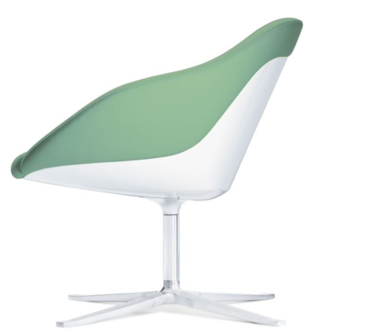 Outside a supportive shell, inside an inviting seat, comfortably upholstered. Easy to swivel on a star base, with black or white external shell and individual cover. Turtle Lounge Chair makes a special statement in both private and public spaces, and is optionally available with an auto-return mechanism.