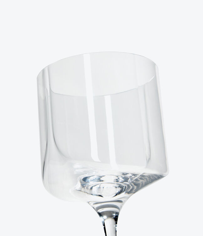 HEW Wine Glass Set of 2, polished blown glass - subtle indentations carve the surface - creating channels that extend and widen from the rim to merge seamlessly.
