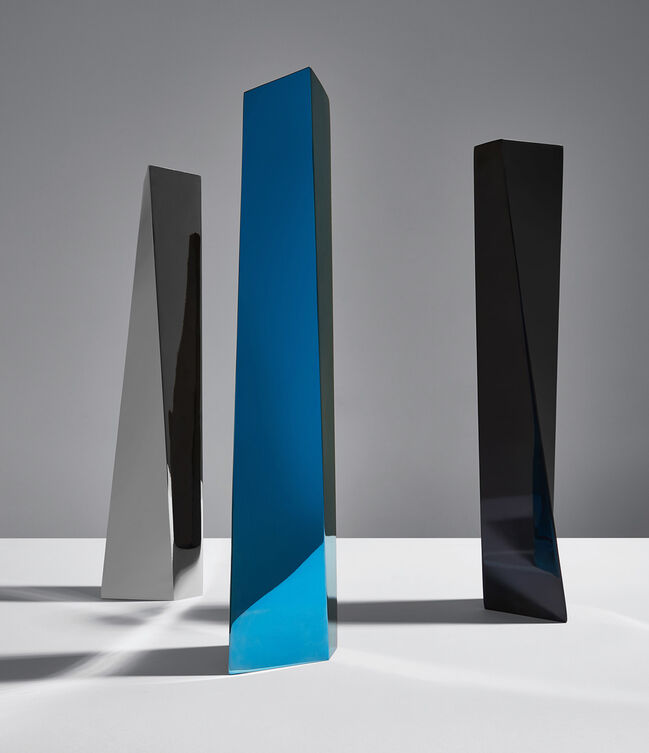 CREVASSE Vase - polished stainless-steel vase that twists vertically to an irregular quadrilateral opening – a Zaha Hadid x Alessi collaboration.