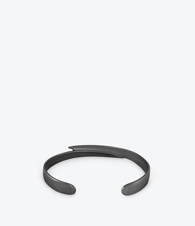 Tyne Bracelet in brushed stainless-steel. Informed by the mathematical principle of minimal surface, interweaving without constraint, the result is a collection that maximises tactility through the interplay of solid and void.