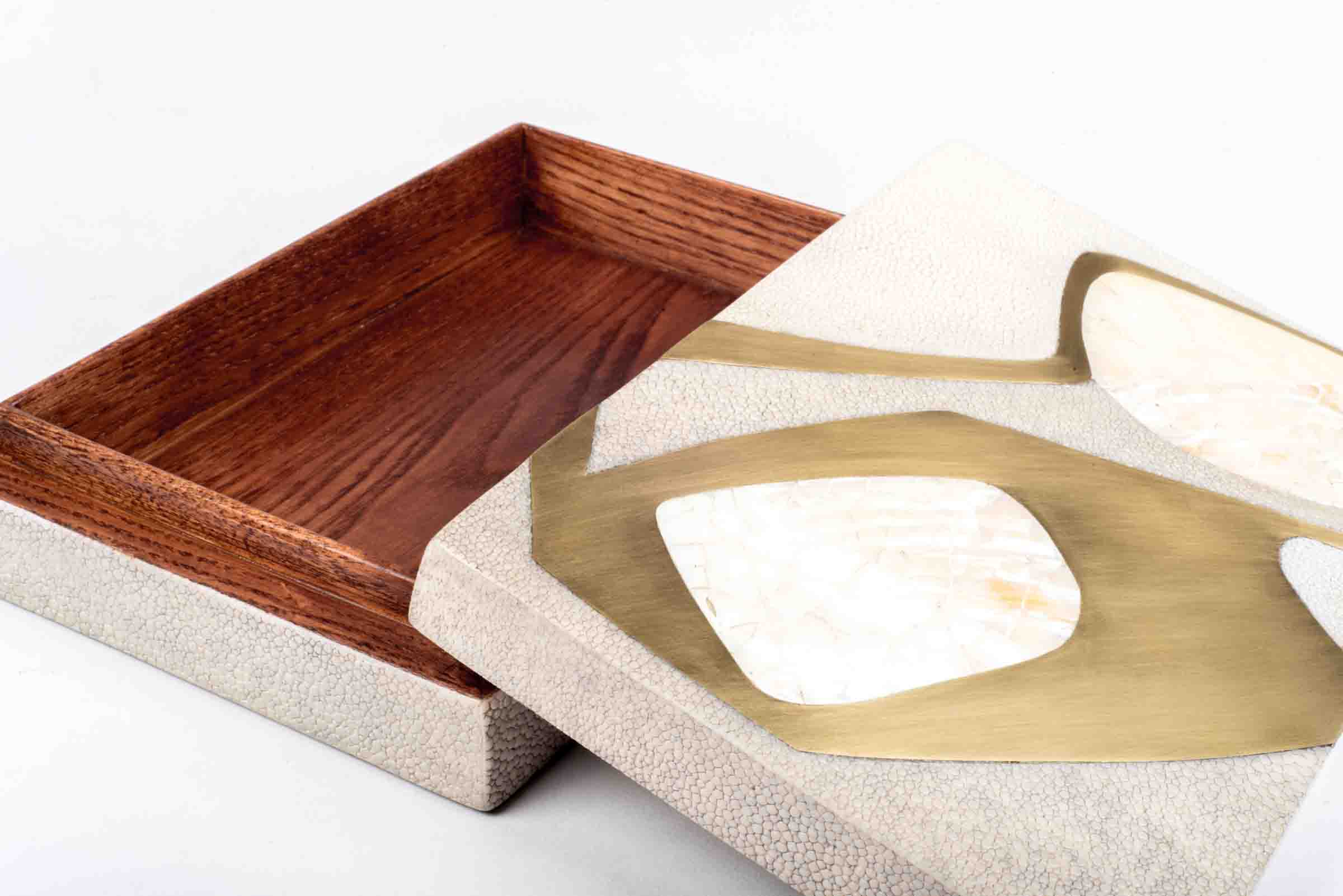 The Cosmos Light Box in Medium, includes intricate inlay work to create this abstract cosmic-inspired pattern. This item is available in other finishes and a large size.