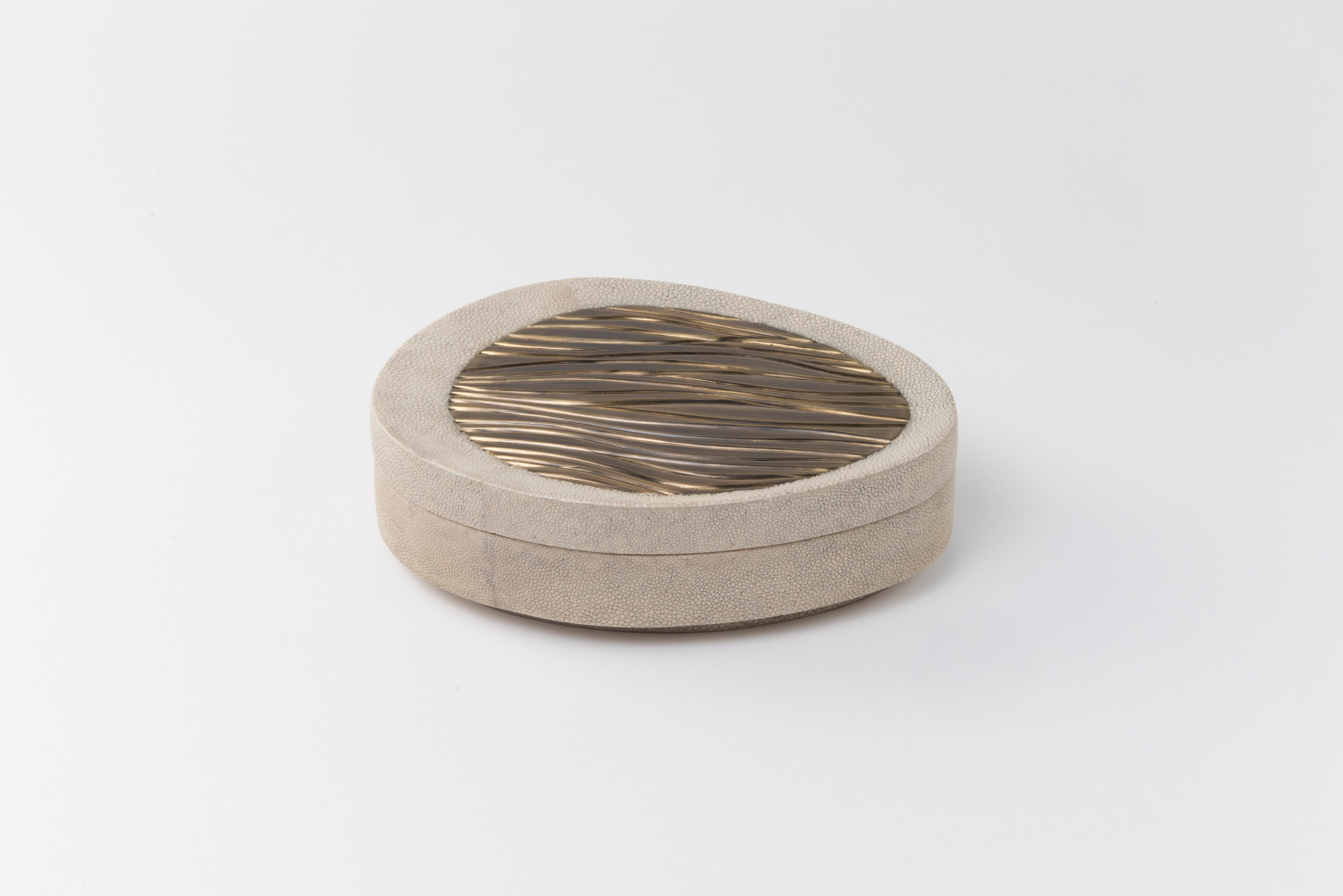 With her soft lines and intricate bronze-patina brass inlay, the Pendant Box M is a beautiful accent for all interiors. This item is available in other finishes and a small size.