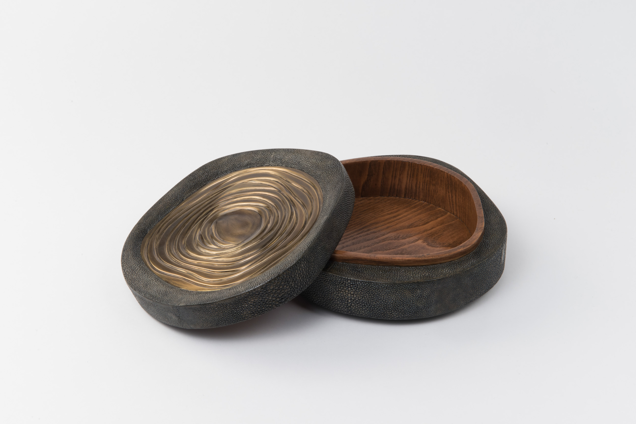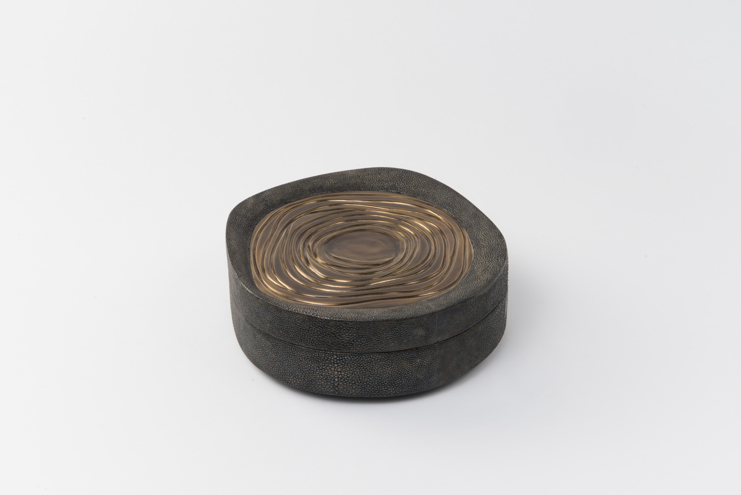 With her curved lines and intricate bronze-patina brass inlay, the Lily Box M is a beautiful accent for all interiors. This item is available in other finishes and a small size.