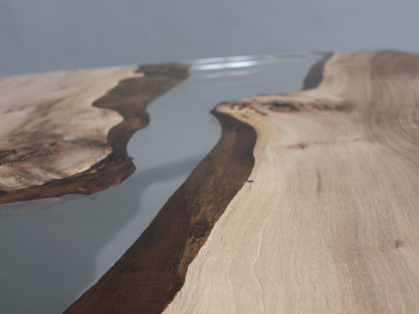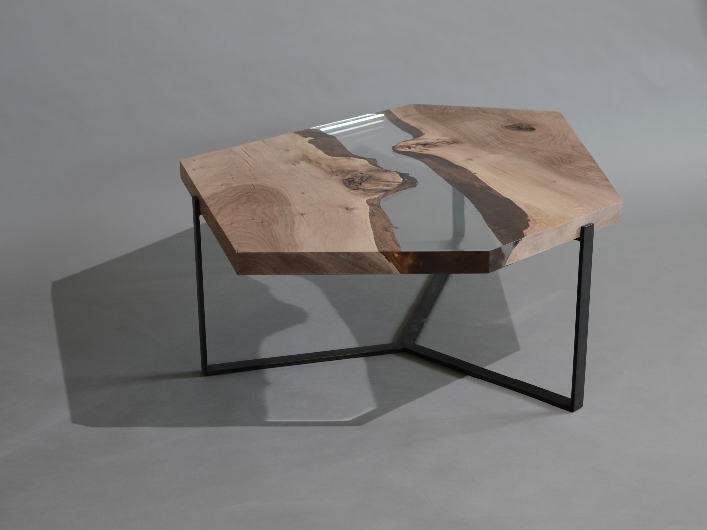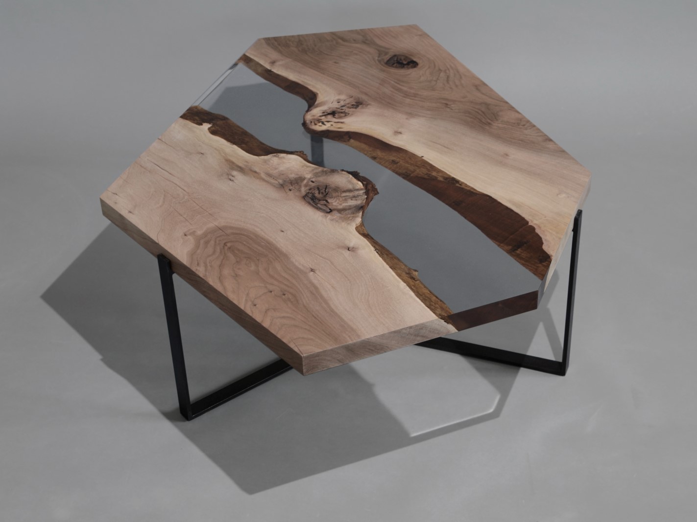 A special crystalline resin fill the gaps between the wood live edges completing the prisms and preserving their story.