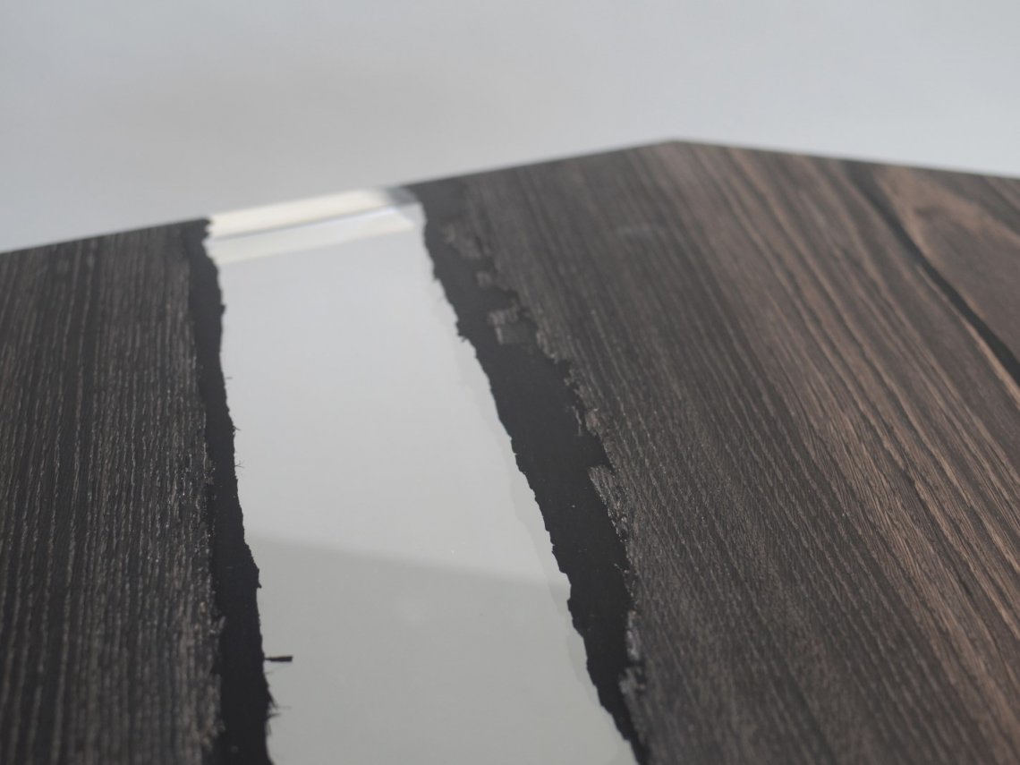 A special crystalline resin fill the gaps between the wood live edges completing the prisms and preserving their story.