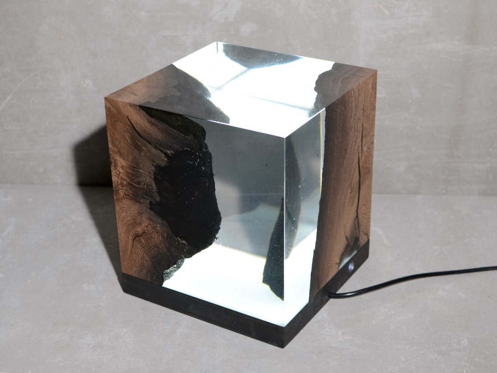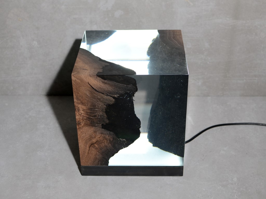 Water Bright is a fragment, a synthesis of the millennial relationship between wood and water. It ‘s the story of the profound and romantic rapport that develops between these two elements in Venice. The light of variable intensity reveals the poetry of this union and referts to the Lagoon atmosphere. alcarol has patented an elaborate craftsmanship capable of filling only the empty spaces of the wood with a transparent resin capturing the underwater air bubbles that bring the wood back to the original look and conditions in the depths of the Venetian canals.