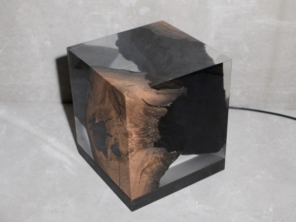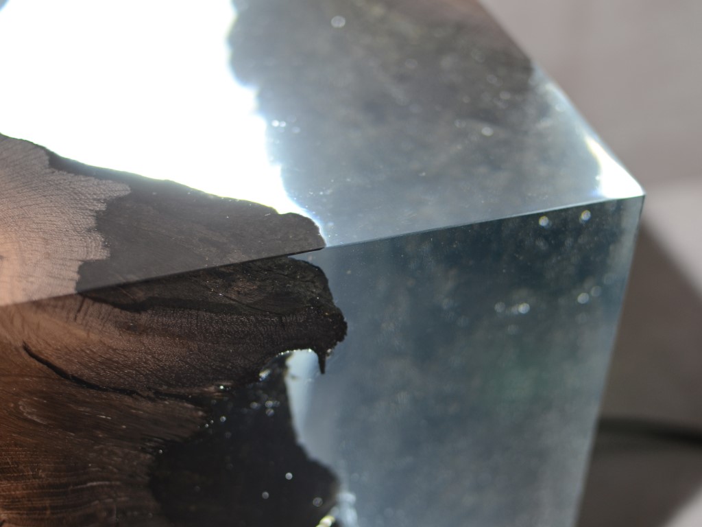 Like the water over millennia, the alcarol’s transparent resin surrounds the organic shapes of this unique wood, preserving and enhancing all its preciousness and charm.