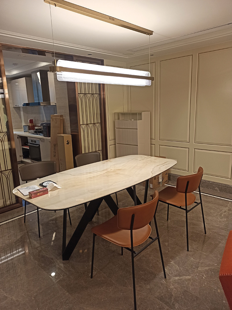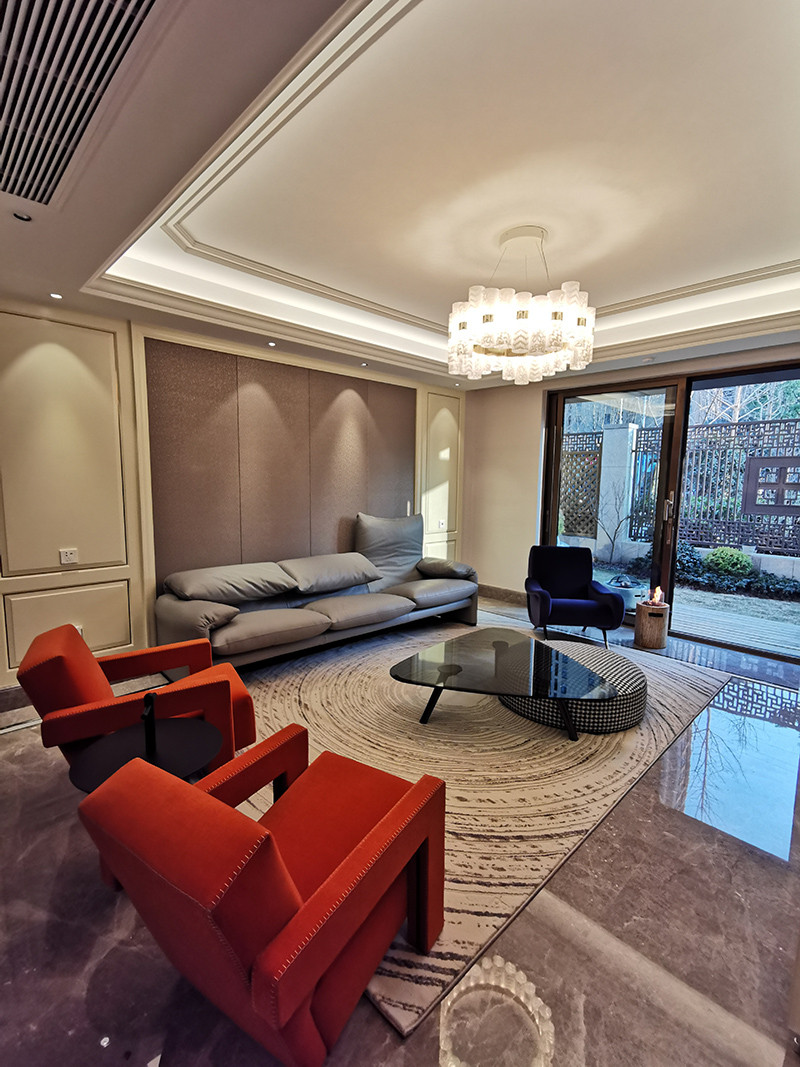 距離客戶入住新家還有些時(shí)間,大多數(shù)家具都還包著防塵套。但客戶非常大氣,讓我們直接拆掉套子,再放上幾個(gè)Riedel酒杯,來追求更好的照片效果。