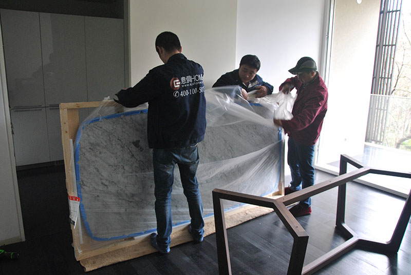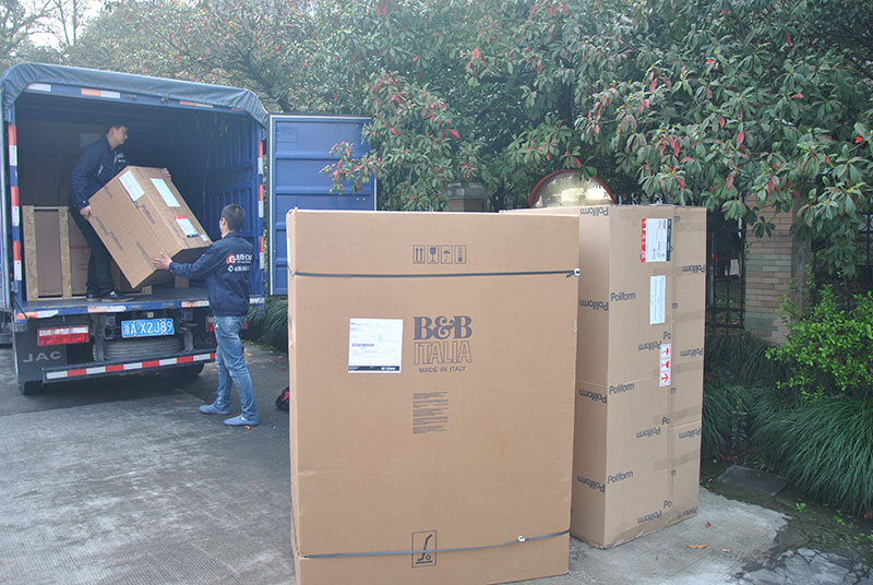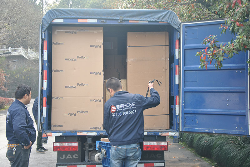 做好前期路勘工作,意俱HOME將貨車停放在九樹大門口,開始卸貨。