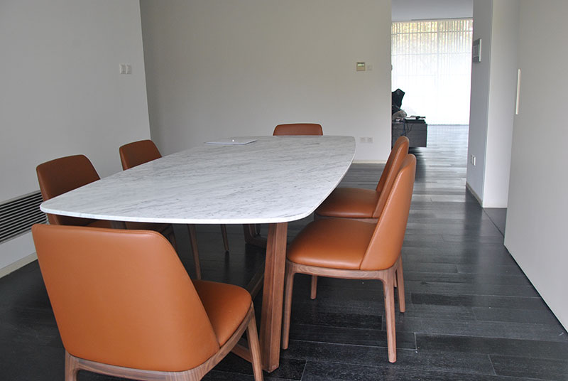 餐桌和餐椅,九樹客戶選擇了POLIFORM廣受歡迎的SYSTEM系列,灰白紋理的大理石桌面,簡潔明朗。
