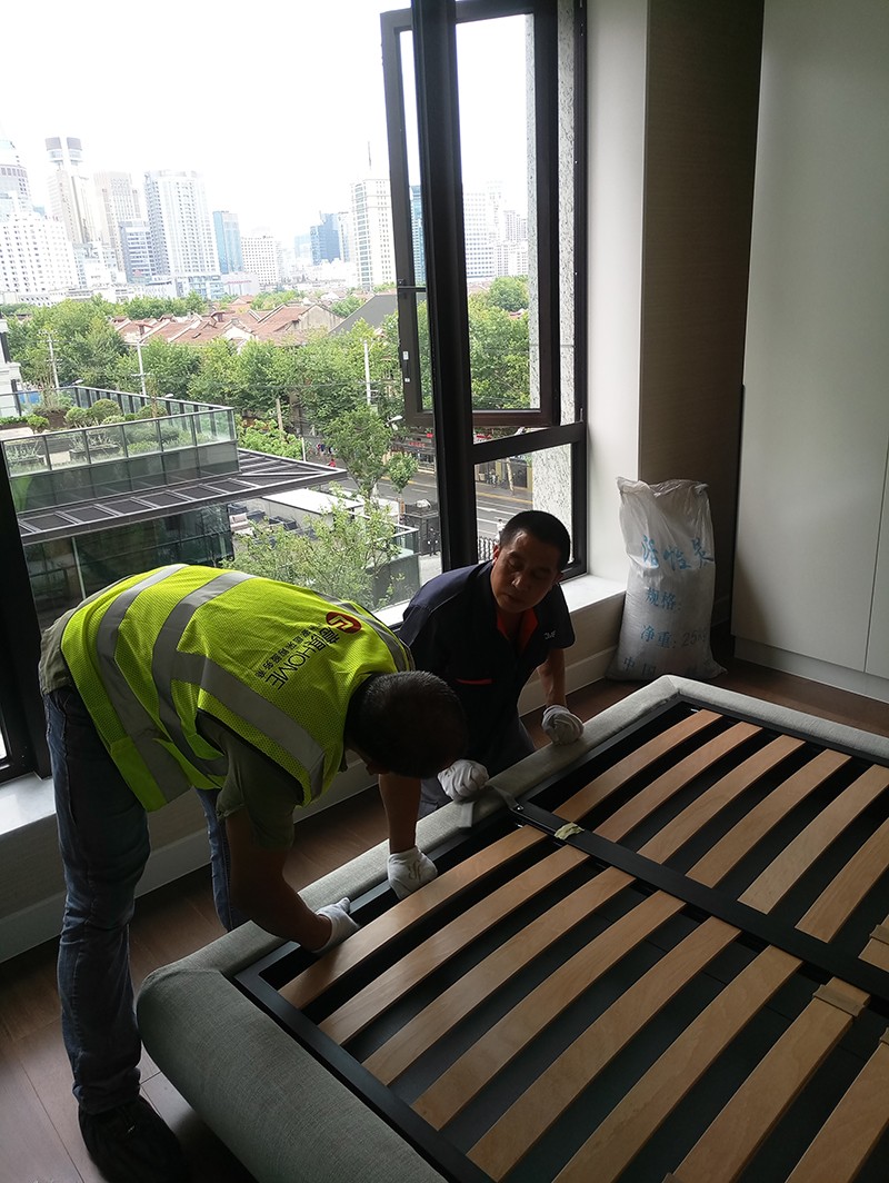 意俱home正在組裝POLIFORM的JACQULINE系列床具。