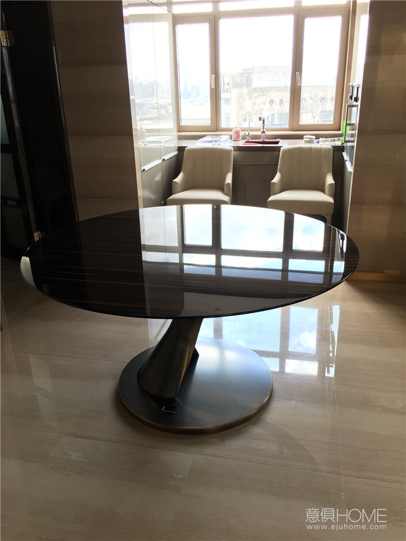 且餐桌僅用一根支撐整張桌面,依然能平穩,不得不佩服該品牌的設計和客戶高標準的眼光。