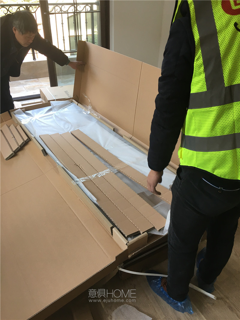 意俱員工開始拆箱準備安裝Molteni&C的505書架。