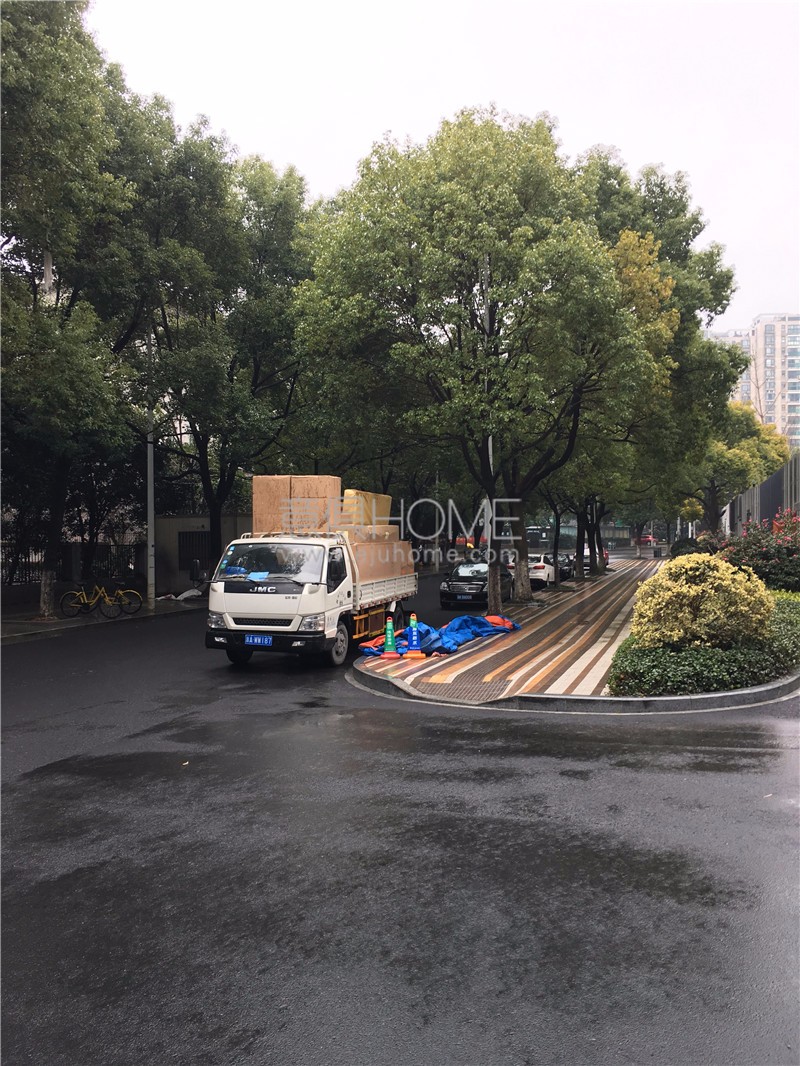 經過前期路勘工作,意俱團隊將貨車停在小區方便卸貨的地方。