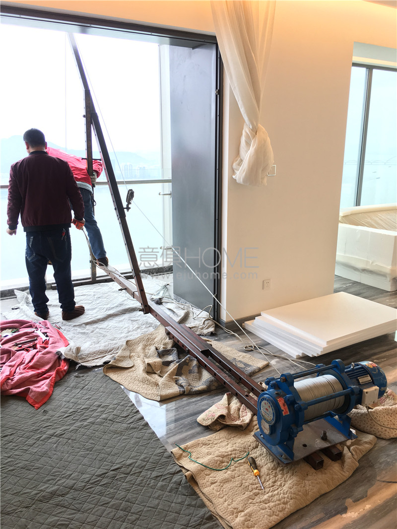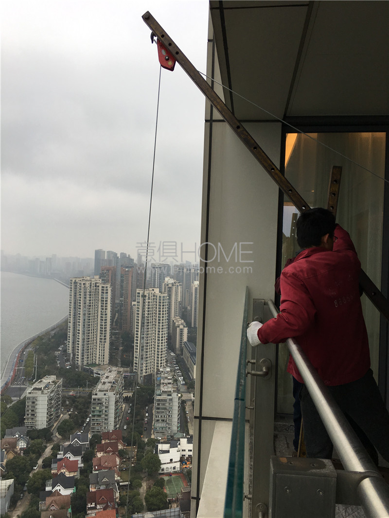 于是意俱利用專業知識,輕車熟路的在達46樓的高度吊裝沙發。
