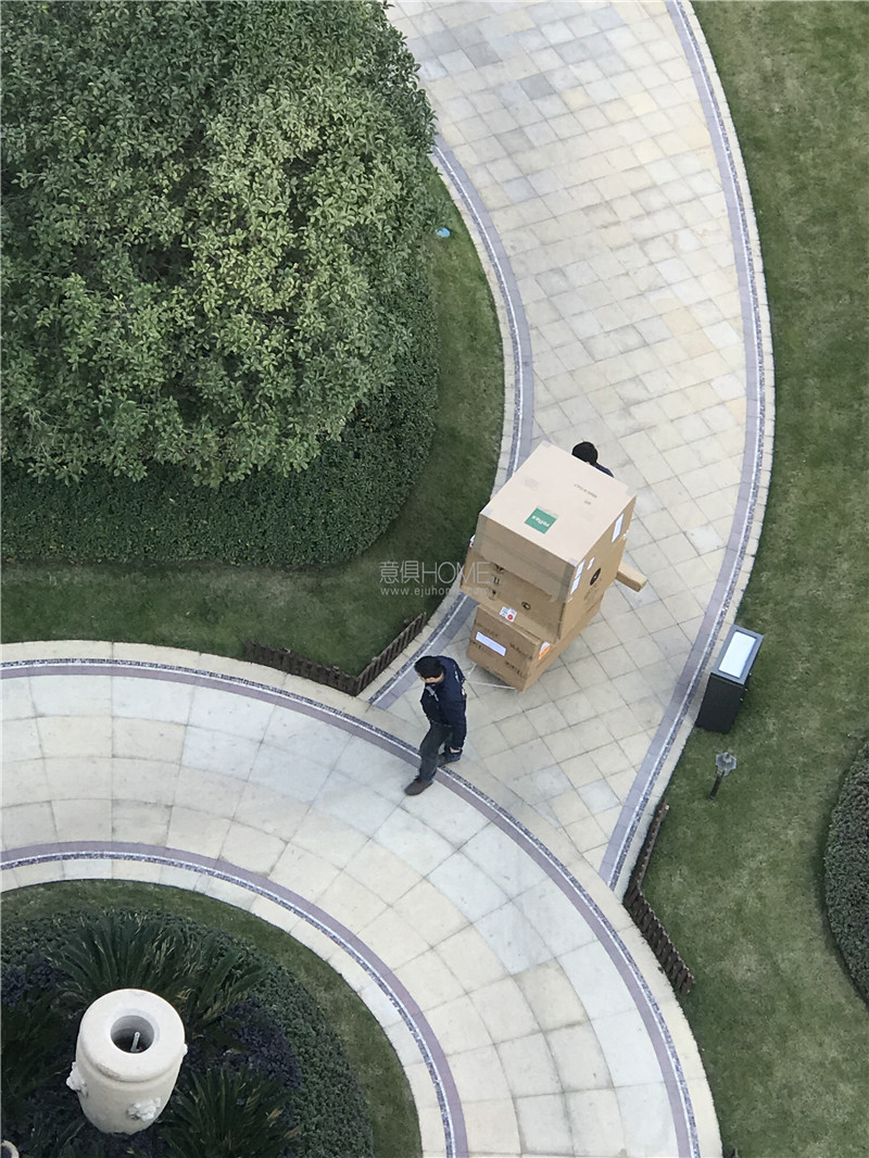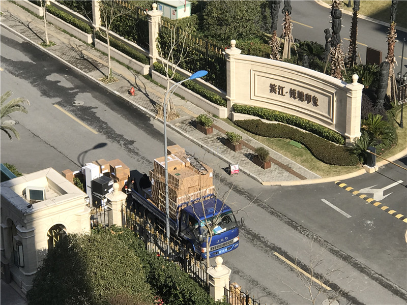 前期路勘工作結束后,意俱團隊將貨車停在小區門口卸貨并配送至客戶家中。