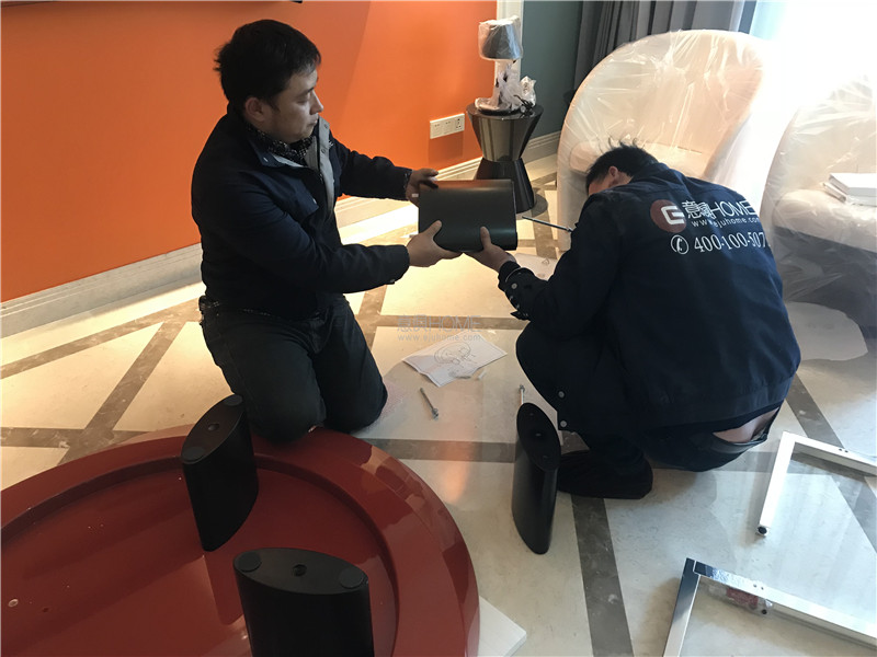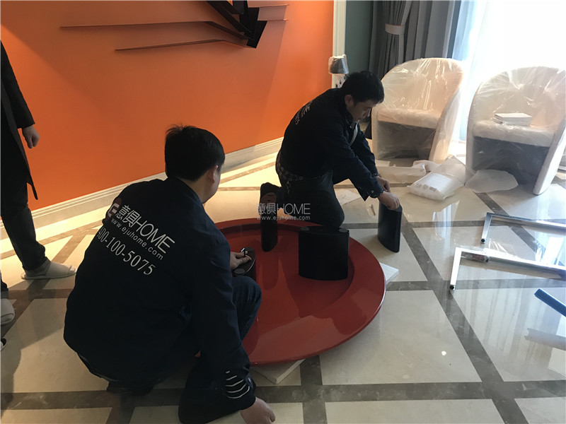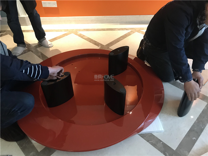 意俱員工正在組裝的是CASSINA的520 ACCORDO茶幾。