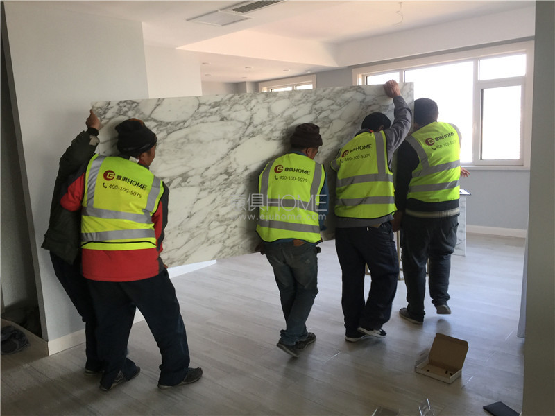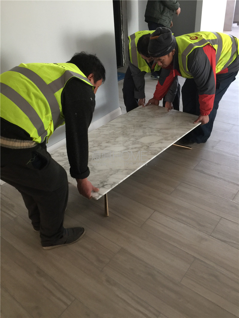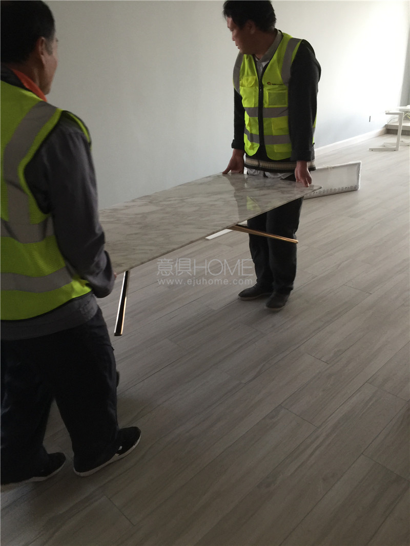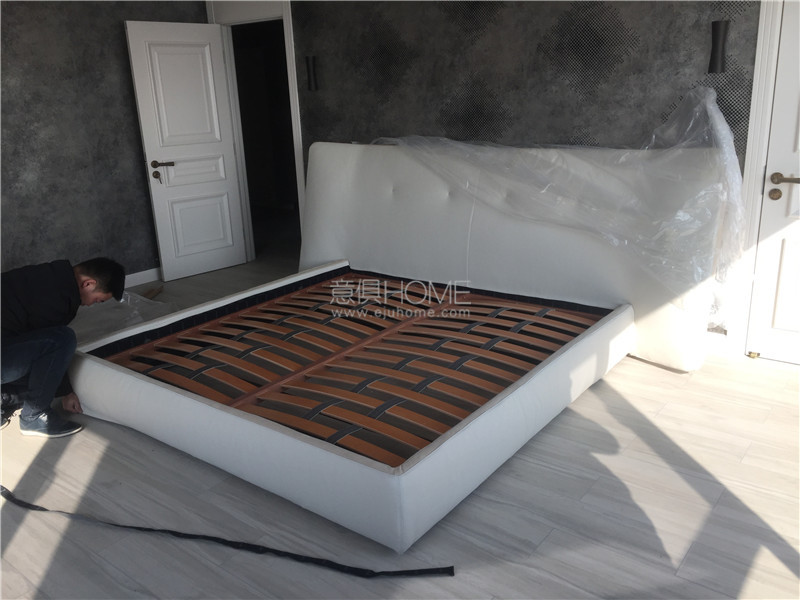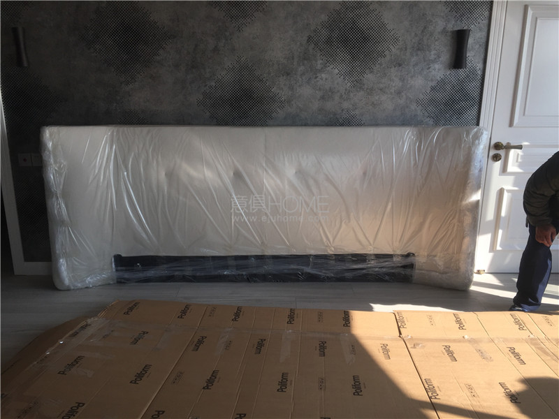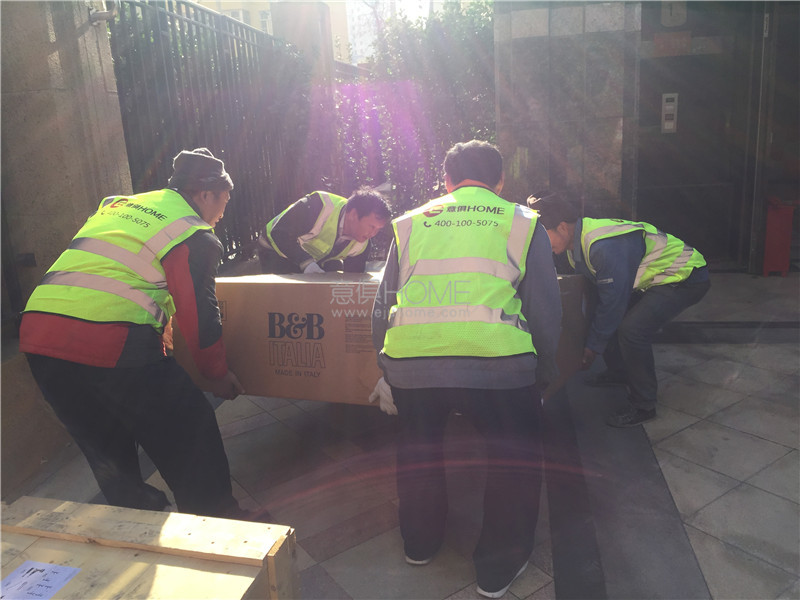 作為大件物品的Poliform床,由于無法通過電梯搬運,意俱團隊選擇吊裝。