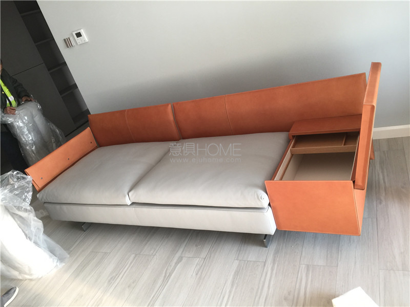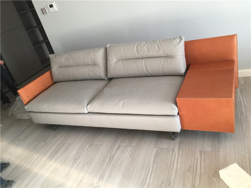 這是由Jean-Marie Massaud設計的Grantorino沙發,馬鞍皮與Pelle Frau皮革通過手工裁剪,搭配形成如此與眾不同的底座,沙發坐墊中心采用精美的水平針縫工藝,使沙發具有視覺明亮感。