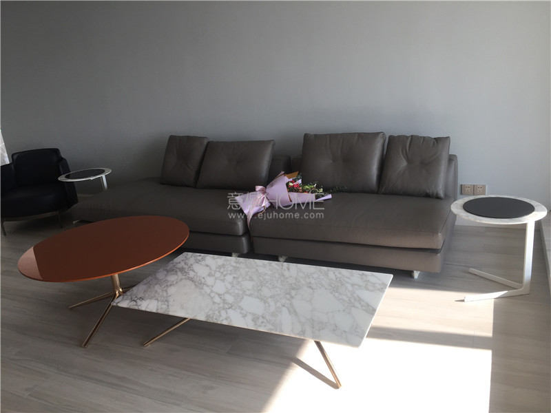 Poliform光滑的白色卡拉拉大理石臺面茶幾,與金屬搭配,簡約的線條,在極簡的設計風格中,帶給人全新的時尚與典雅感受。
