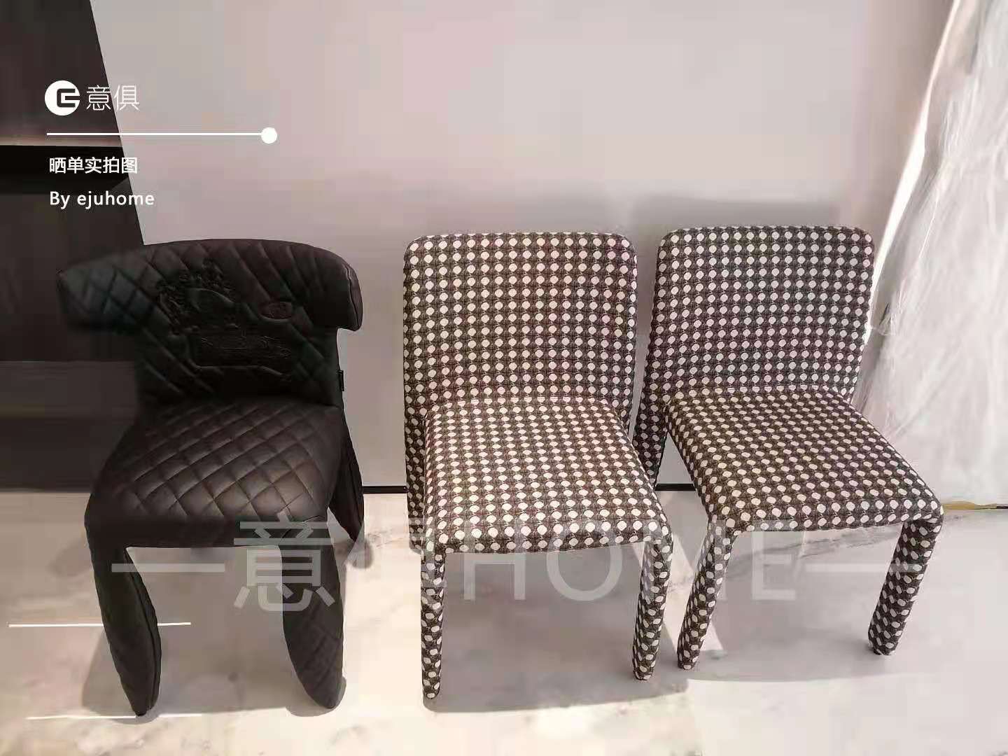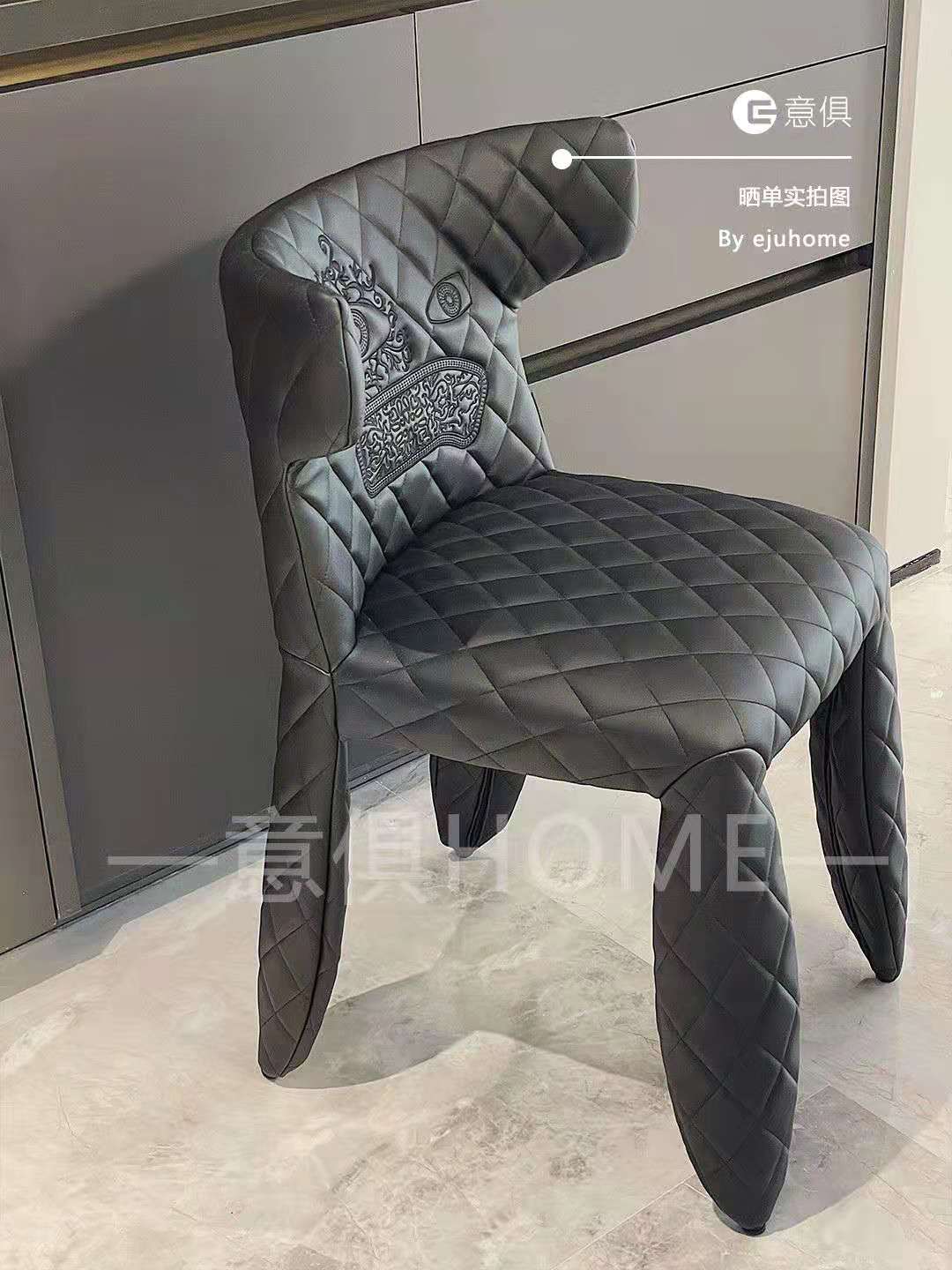 餐椅有兩把,一個(gè)是主位上的黑色餐椅,是荷蘭家具品牌moooi的Monster (怪物)餐椅,整張座椅就連椅腳都使用細(xì)致柔韌的皮革包裹,沒有任何的銳角。經(jīng)典 Coco Chanel 般的黑色菱格紋加強(qiáng)了蓬松、舒適的質(zhì)感,不論是搭配圓桌、長(zhǎng)桌或是餐桌都很合適,靠背微微內(nèi)收的設(shè)計(jì)給人極大的安全感.