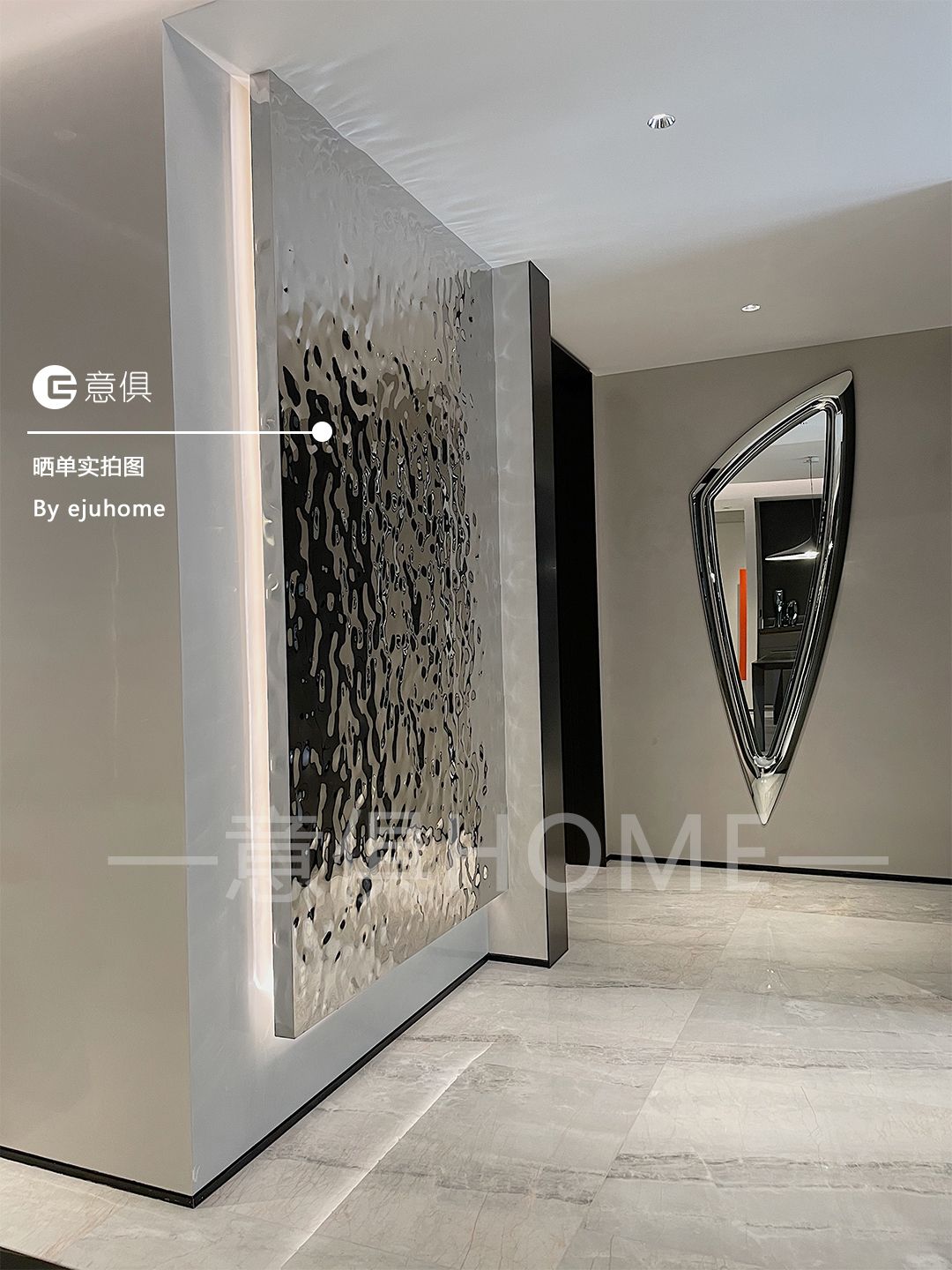 入門就是與眾不同,玄關(guān)處的墻壁上掛了Cattelan的鏡子,三角的造型,有棱有角的設(shè)計(jì)讓它極具時(shí)尚感!