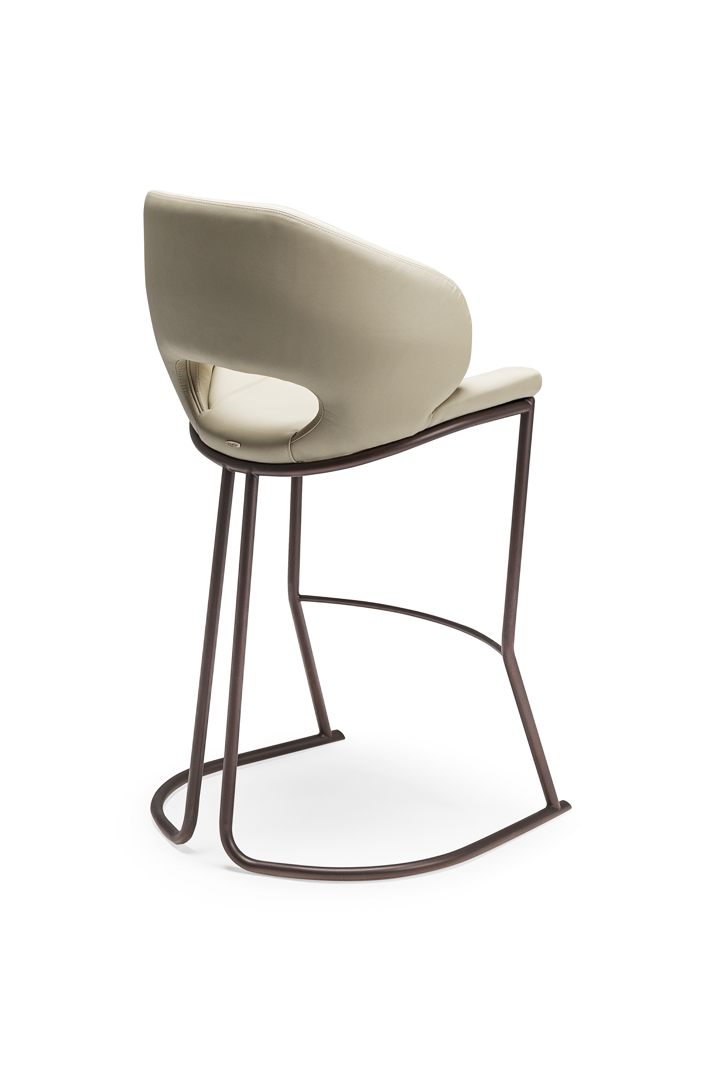 The body is packed with bespoke details, crafted with the utmost care and precision. The seat and backrest, modelled like two complementary shells, have a polygonal shape, enhanced by rounded edges and gentle curves. If this designer chair is a shell, it cannot but reveal a magnificent pearl inside, created, or rather extracted, by the designer, helped by the elliptical cavity in the backrest.