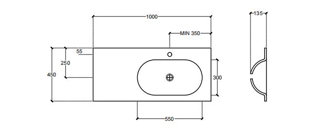 Mobile bagno porta lavabo con cassetto, top integrato e lavabo da appoggio, dimensioni da 140cm a 160cm. Piano integrato in Fenix con taglio a 45°. Lavabo in Cristalplant? Bio Active opaco modello Ciotola con copri piletta in Cristalplant? Bio Active, disponibile nelle versioni centrato, a destra e a sinistra del mobile. Basi del mobile con frontali e fianchi a 45°. I cassetti sono completamente estraibili e sono disponibili con maniglie opzionali a gola o premi apri.