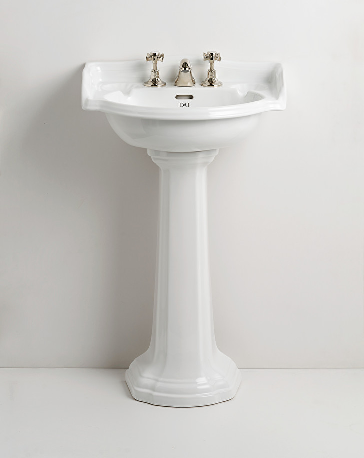 A washbasin in fine white porcelain, available with 1, 2 or 3 holes. With a distinctly classic taste, it is characterized by soft sinuosity and decorations that recall the organic shapes of a shell.