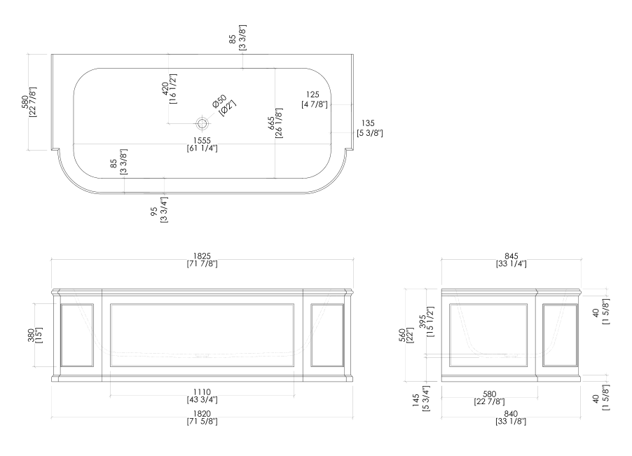 An impressive single-block bathtub in the neo-classic style with an explicitly prestigious character. Its sculptural elegance is emphasized by the rigorous geometrical designs of bas-reliefs. It is also available in a right or left corner version and can be enriched with precious decorative elements in white Carrara or black Marquina marble. The bathtub body is in White Tec, an innovative composite that guarantees excellent impact or mark strength and compliance with the highest standards in terms of quality and sustainability.